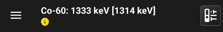 Wenn Sie das Diagramm antippen und bewegen, zeigt die Anwendungsüberschrift Informationen über das radioaktive Isotop an, dessen Energie der Cursorposition entspricht: