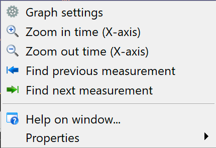 Finden Sie die vorherige Messung Finden Sie die nächste Messung | Suchen Sie nach dem vorherigen oder nächsten Datensatz nach einer Zeitlücke. Wenn die Option „Punkte im Diagramm immer mit einer Linie verbinden“ in den Diagrammeinstellungen ausgewählt ist, bewegen sich diese Befehle einfach eine Seite zurück oder vorwärts. Wenn die Option ausgewählt ist, die Punkte mit einer Linie zu verbinden, und sie durch nicht mehr als das angegebene Intervall getrennt sind, kann es Lücken in den Daten im Diagramm geben, und diese Befehle verschieben das Diagramm zum vorherigen oder nächsten Datenabschnitt. |