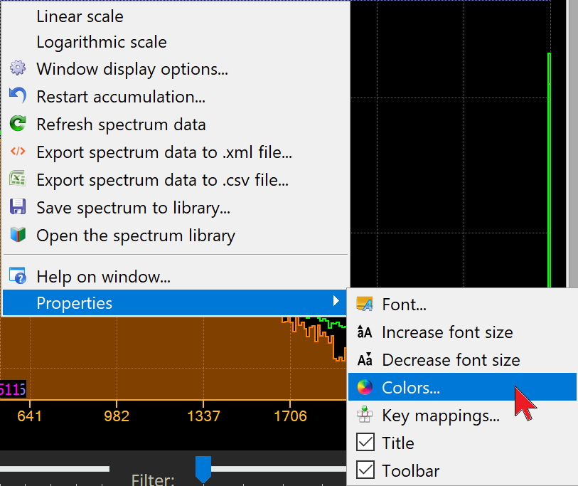 Zusätzlich kann ein Hintergrundspektrumdiagramm über das Spektrumdiagramm gelegt werden.
