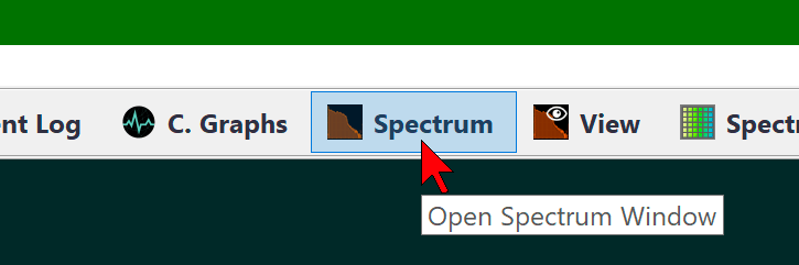 Um schnell zum Spektrumfenster zu wechseln, klicken Sie auf die entsprechende Schaltfläche in der Steuerleiste des RadiaCode: