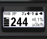 - A short press on the top button of the swing switches between the types of photon radiation intensity display: dose rate or count rate;