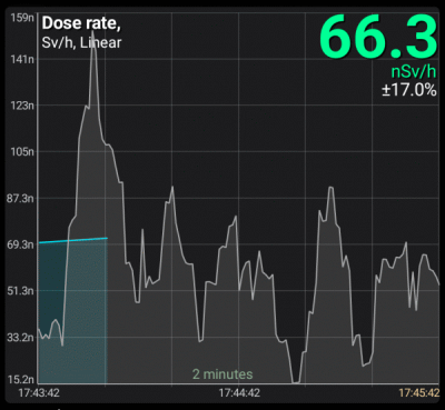 The dose rate graph is synchronized in time with the count rate graph.