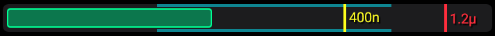 Animated diagram of the current dose rate value with alarm levels. The blue zone shows the boundaries where the dose rate value was during the time interval specified in the graph settings. If you select the "Last .... minutes" option, the blue zone boundaries are updated every minute. If the real-time dose rate value from the device exceeds the current limits, the limits are updated according to the current value.