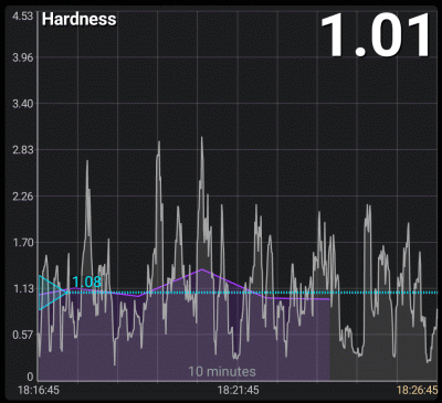 The hardness coefficient will display correctly if the device firmware is version 3.0 or higher.