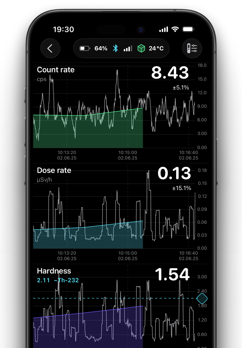 Radiacode devices are engineered for both autonomous operation and enhanced functionality when paired with a smartphone. Radiacode Zero supports core app features, which can improve operational efficiency in both everyday and high-risk conditions.