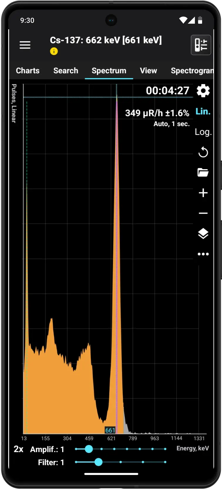 This mode is specifically designed for detecting radiation sources and has an enhanced response to changes in background radiation. It also allows the sound of detected particles to be played directly through the phone's speaker.